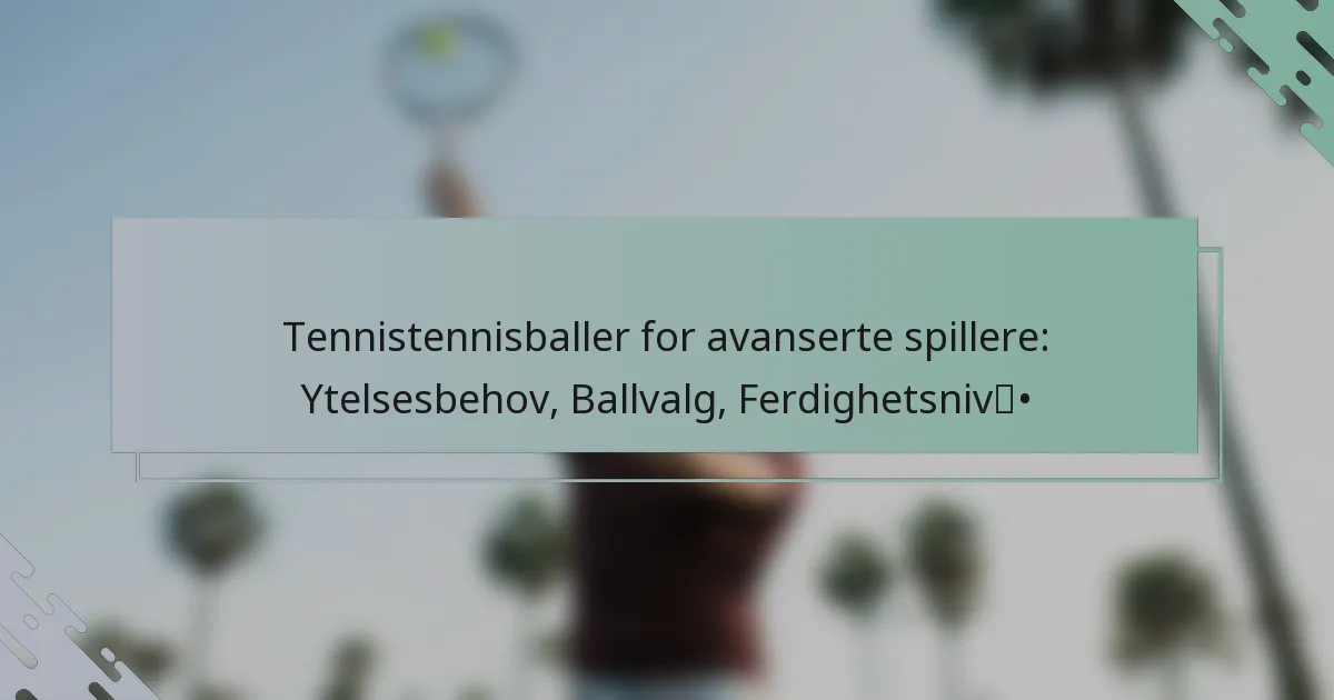 Avanserte tennisspillere krever høyytelses baller som forbedrer spillet deres ved å gi fart, spinn og holdbarhet. Å velge riktig ball er avgjørende, da den må tilpasses spesifikke baneflater og tilby overlegen kontroll og tilbakemelding som matcher deres ferdighetsnivå og spillestil.