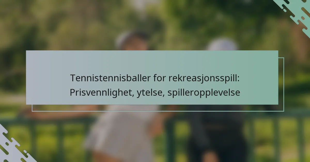 Tennisballer for rekreasjonsbruk er designet for å balansere pris og ytelse, noe som gjør dem egnet for uformelle spillere. Nøkkelfunksjoner inkluderer holdbarhet, sprett og følelse, som har stor innvirkning på den totale spilleopplevelsen.