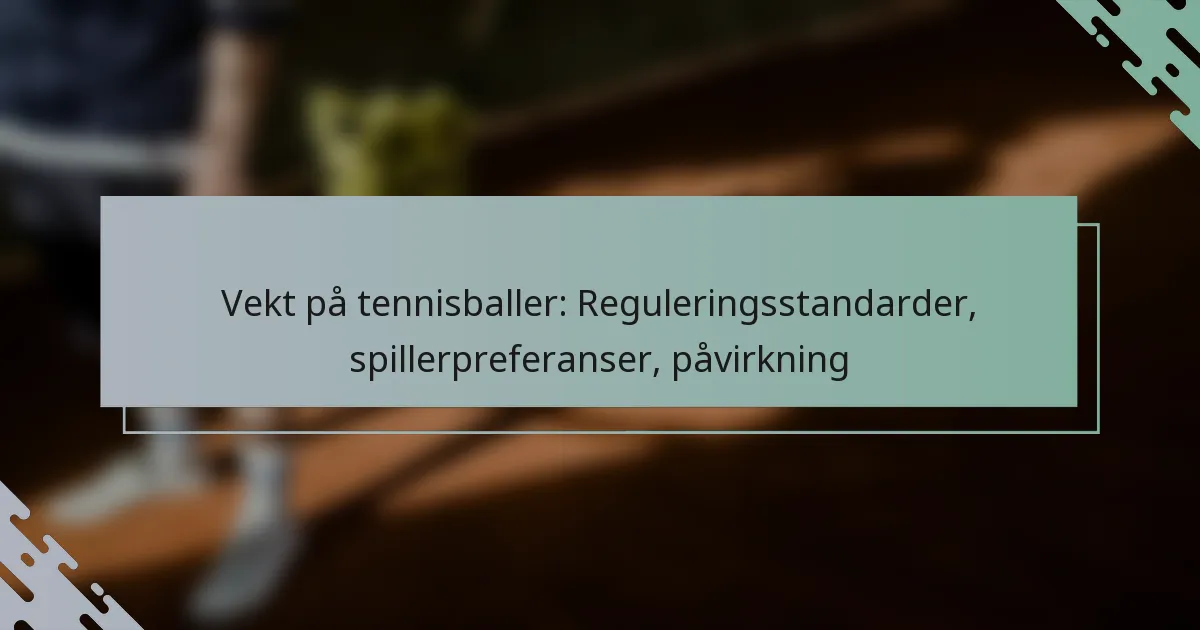 Vekten på tennisballer er regulert av International Tennis Federation (ITF), som fastsetter at de må veie mellom 56,0 og 59,4 gram. Denne standardiseringen er avgjørende for å opprettholde rettferdighet i profesjonell spilling, mens spillerpreferanser kan føre til variasjoner i de spesifikke vektene som velges for kamper og trening. Vekten på ballen påvirker spillet betydelig, og påvirker sprett, holdbarhet og den generelle spillerprestasjonen.